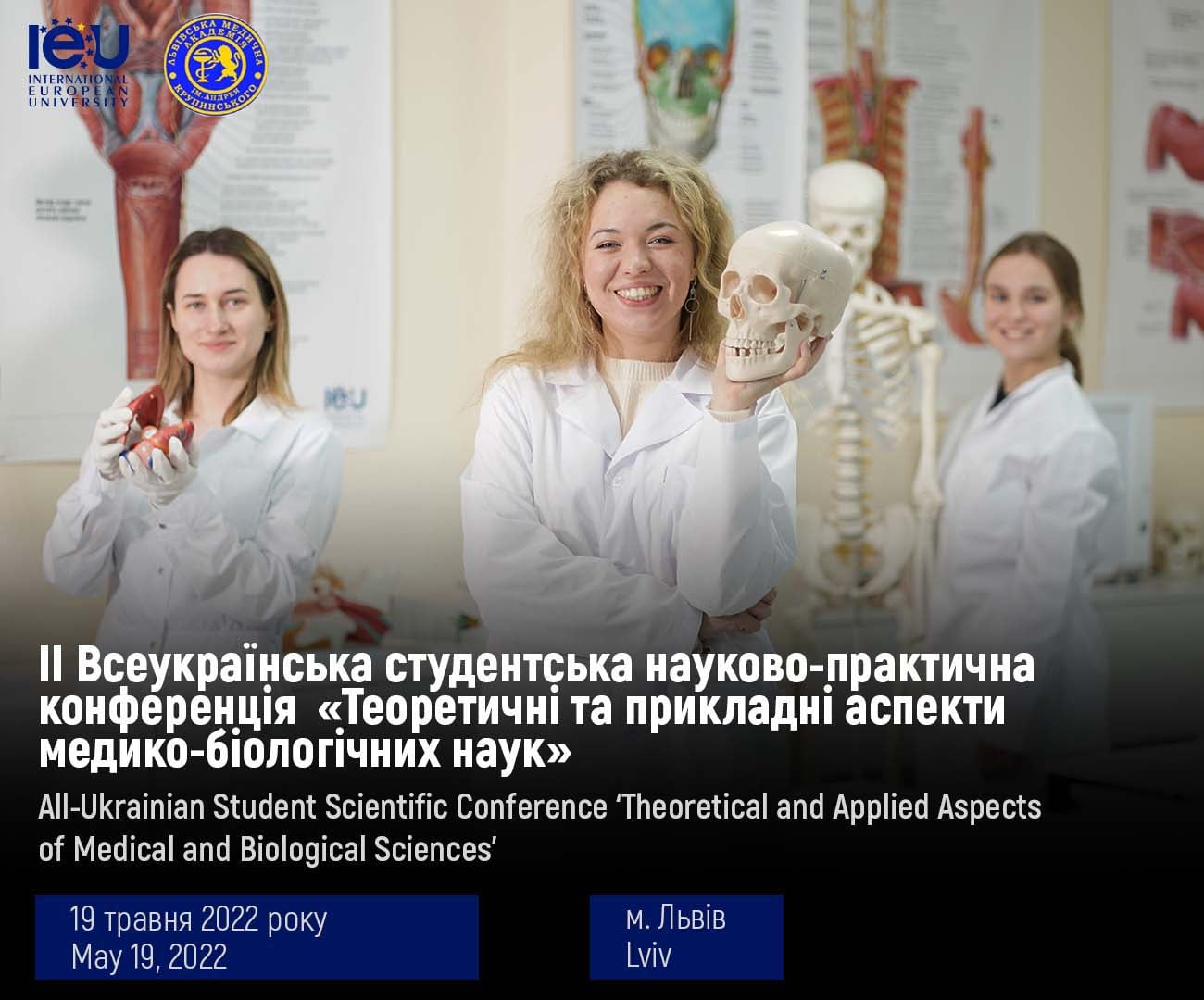 Запрошуються до участі викладачі та студенти у ІІ Всеукраїнській студентській науково-практичній конференції «Теоретичні та прикладні аспекти медико-біологічних наук», яка відбудеться 19 травня 2022 року у м. Львів.