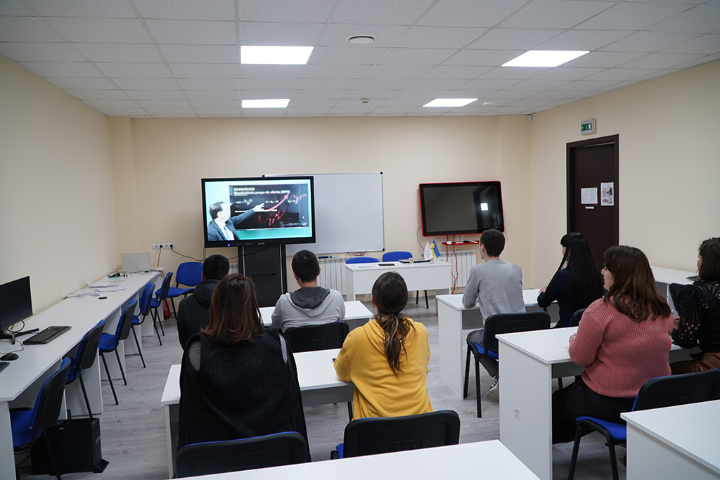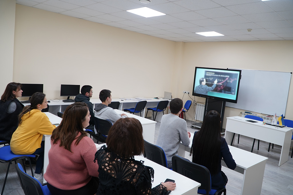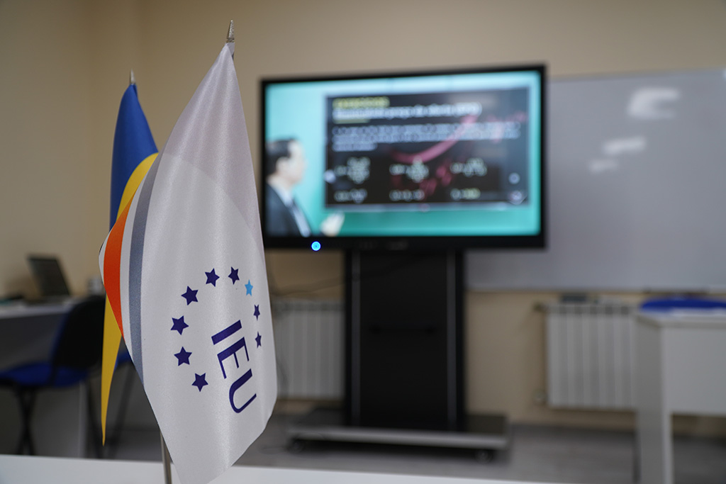 Професор проводить онлайн-лекцію для студентів Міжнародного європейського університету на тему "Управління бізнесом в умовах трансформації і змін"