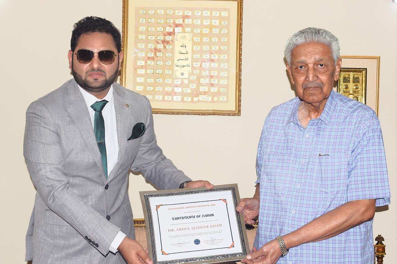 22.09.2020 у Пакистані відбулась зустріч представників Міжнародного європейського університету з Dr. Abdul Qadeer Khan - відомим вченим, фізиком-ядерником, інженером-металургом, керівником пакистанської ядерної програми.