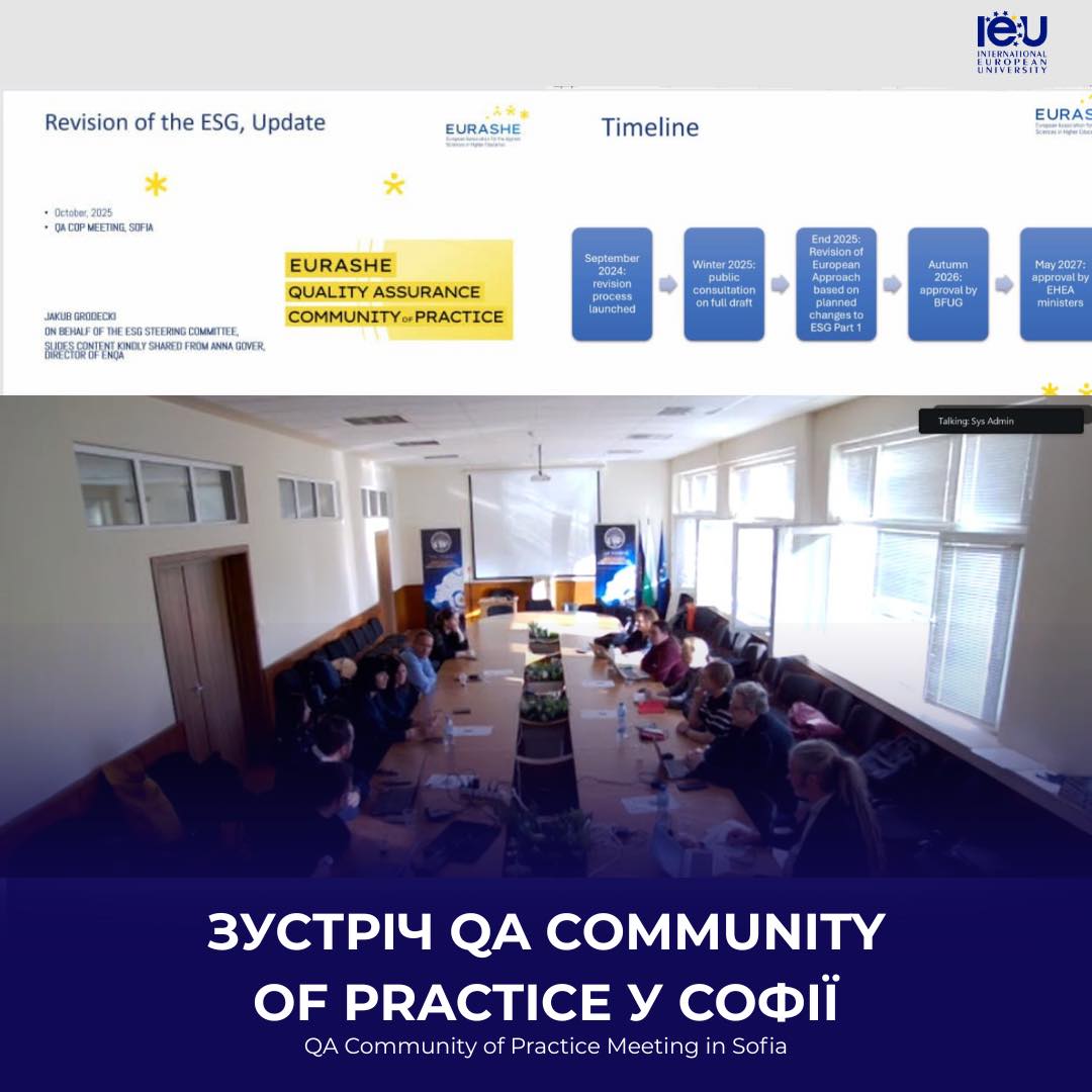 Цього тижня представники Міжнародного Європейського Університету долучилися до зустрічі QA Community of Practice, що відбулася у Софії, Болгарія, у межах діяльності Асоціації EURASHE, членом якої є наш університет.