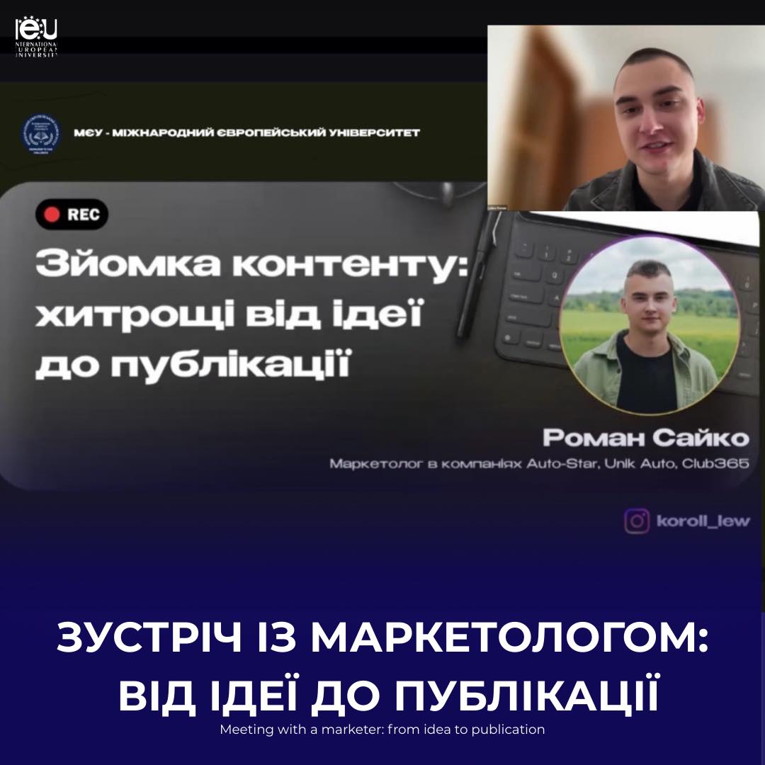 У МЄУ відбулася зустріч із Романом, маркетологом компанії AutoStar. Запрошений спікер провів відкриту лекцію на тему «Зйомка контенту для просування: хитрощі від ідеї до публікації». Фахівець поділився зі студентами реальними кейсами та практичними інструментами, які щодня використовує у своїй професійній діяльності