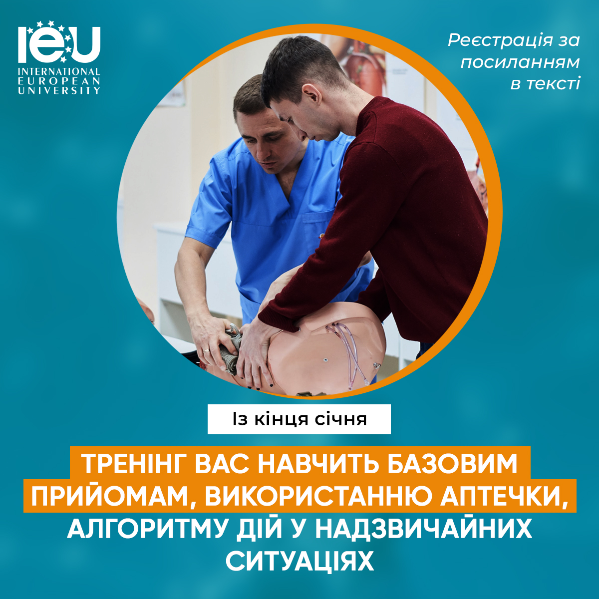 ✔️практичний тренінг з надання домедичної допомоги, де вас навчать алгоритму дій при наданні першої невідкладної допомоги, виявленню небезпечних факторів, що загрожують життю тощо;